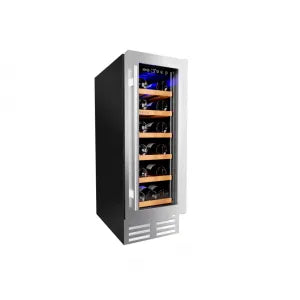 A Adega Benmax BAC18 é a solução perfeita para quem deseja armazenar seus vinhos com sofisticação e segurança. Com design moderno em inox sem emendas e vidro duplo Low-E, ela não apenas protege suas garrafas, mas também valoriza o ambiente. Suas prateleiras de madeira naval com corrediças telescópicas e o filtro de carvão ativado garantem condições ideais para preservar o sabor e aroma dos vinhos. Compacta e eficiente, a BAC18 é ideal para espaços modernos e gourmet.