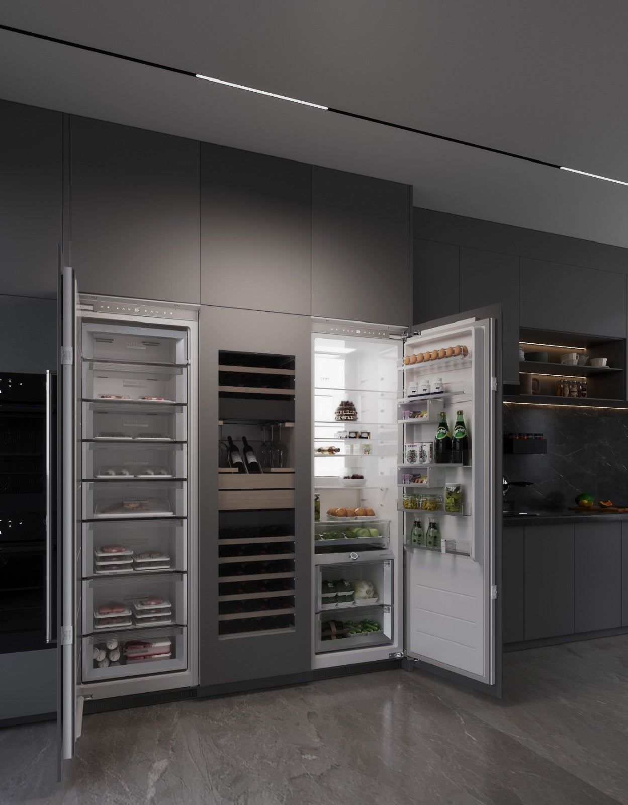 A parte inferior da BAC67TZ foi projetada para o uso prático no serviço de vinhos. Com três gavetas organizadoras, oferece espaço para taças, abridores e utensílios diversos. O armazenamento é funcional e elegante, permitindo que tudo fique à mão na hora de servir. Essa funcionalidade transforma a adega em um verdadeiro centro de degustação, combinando praticidade e sofisticação no mesmo produto.