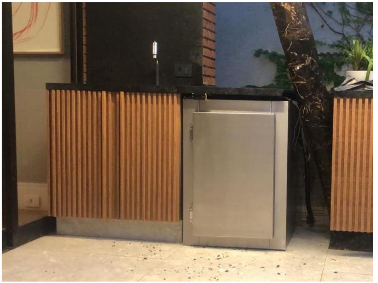 Gabinete: aço Inox 430 escovado externo, brilhante interno. (totalmente em inox e eps isolante) c/ pés 5cm