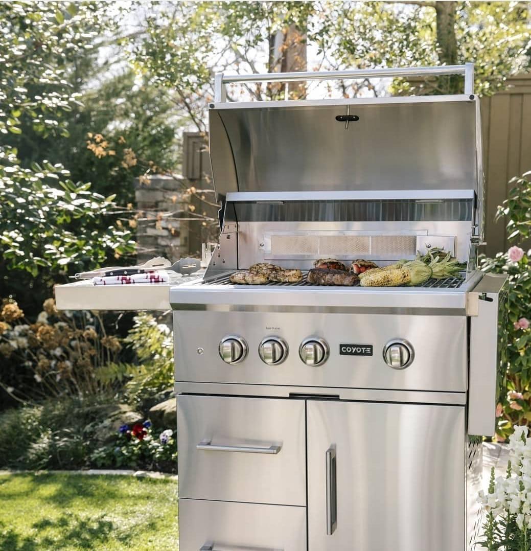 Acessórios vendidos separadamente: Grelhas exclusivas Coyote Signature Grates, Chapa profissional em aço inox Drop-in Griddle e capa personalizada.