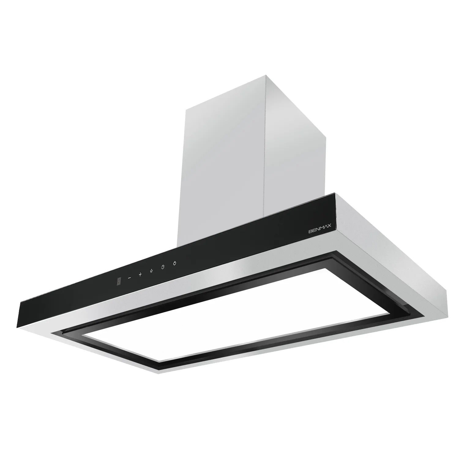 Com design moderno que mistura aço inox AISI 430 e vidro temperado preto, a Coifa Benmax Parede LED 90cm Inox é a parceira perfeita para cozinhas planejadas que querem charme e eficiência. Potente e silenciosa, ela controla odores e vapores com inteligência, elevando o visual do seu ambiente a outro patamar.