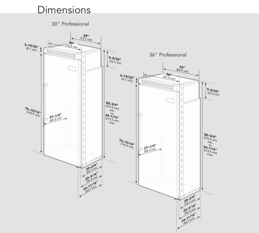 Geladeira 36'' e Freezer 30'' com ice maker para produção de gelo Viking