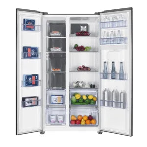 O refrigerador Side By Side Benmax REF580 oferece uma ampla capacidade de 580 litros, ideal para atender às necessidades de armazenamento de famílias grandes ou pessoas que desejam maior organização e espaço para seus alimentos e bebidas.